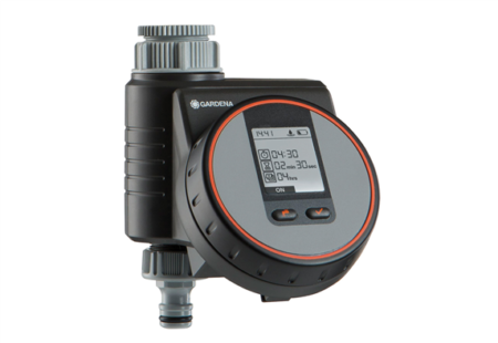 Προγραμματιστής Ποτίσματος Gardena με Τεχνολογία ασφαλούς τερματισμού – Safe stop Technology. Λειτουργεί με μπαταρία, συνδέεται απευθείας με τη βρύση και λειτουργεί χρησιμοποιώντας δύο διακόπτες, οι οποίοι περιστρέφονται για την επιλογή των δεδομένων. 1 x 9 V αλκαλική μπαταρία (δεν περιλαμβάνεται).